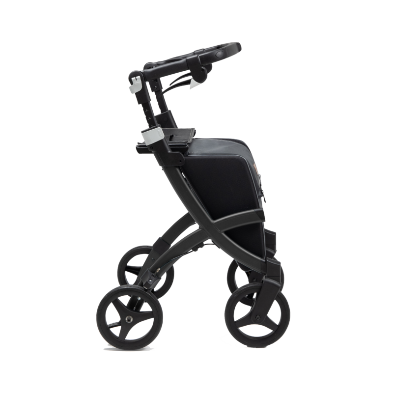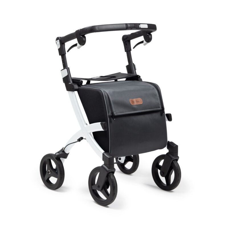 Een stabiele, lichtgewicht rollator met een grote boodschappentas. De Rollz Flex heeft een hele krappe draaicirkel en daardoor makkelijk te gebruiken in winkels.