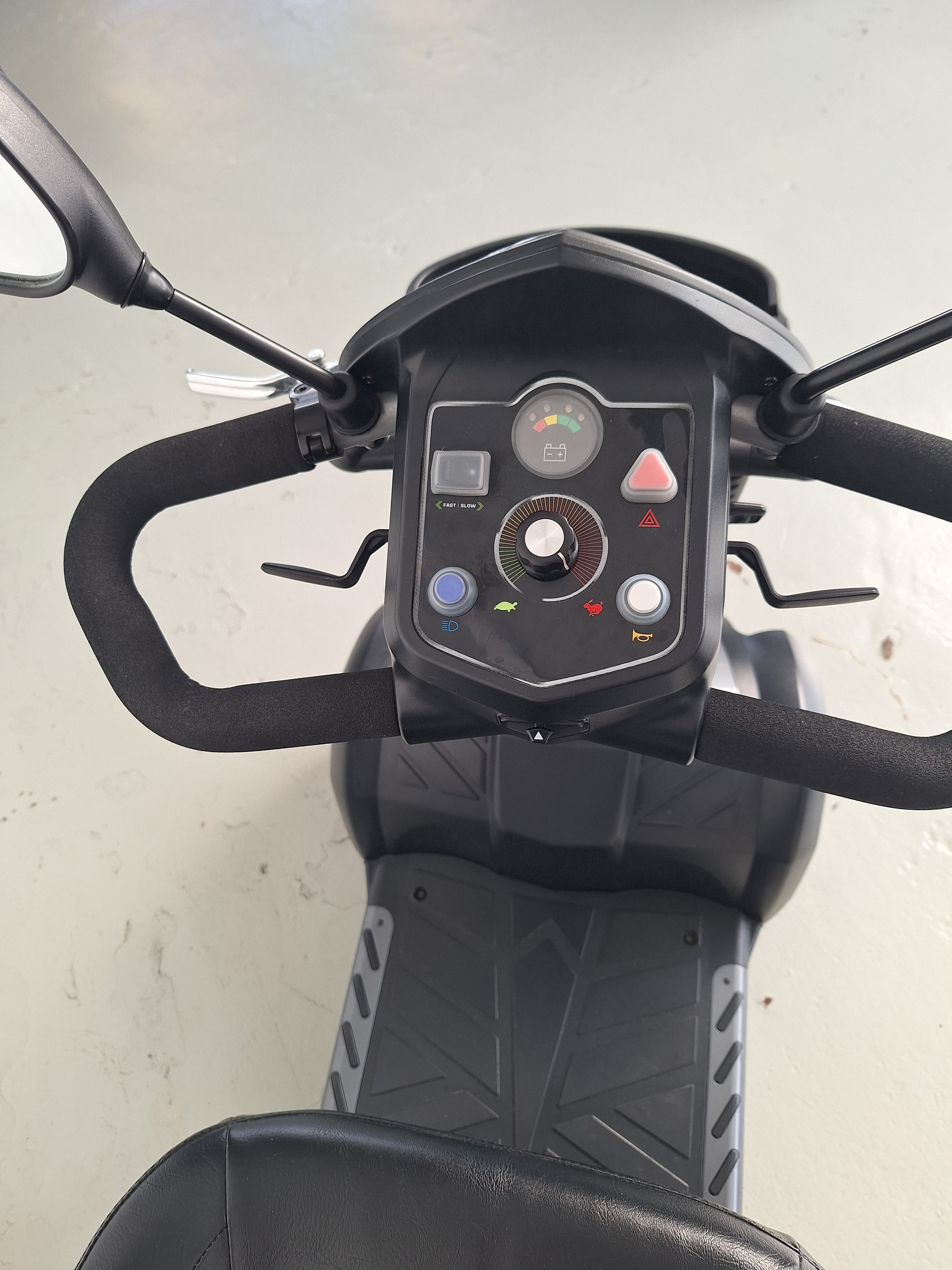 Leuke, handige 4-wiel scootmobiel met vering voor een comfortabele rit in de buurt.