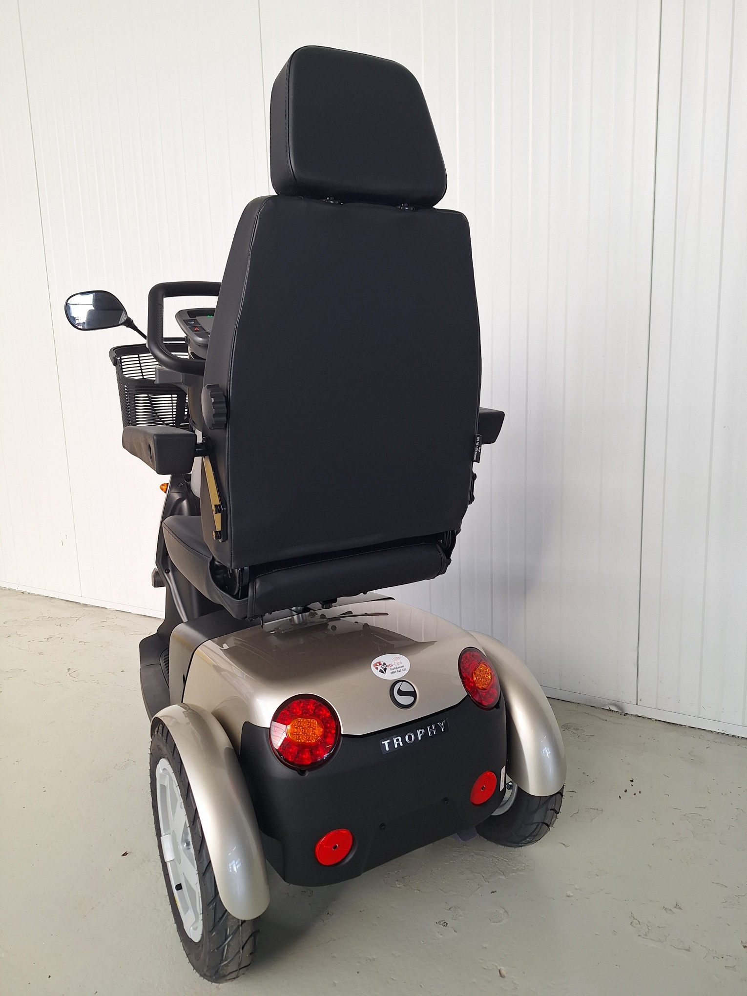 De Trophy is voorzien van perfecte vering waardoor u een comfortabele en lange rit kunt maken. Voorzien van extra opties zoals: spiegelverhoger, 2 spiegels, dubbele handbediening en dagteller.